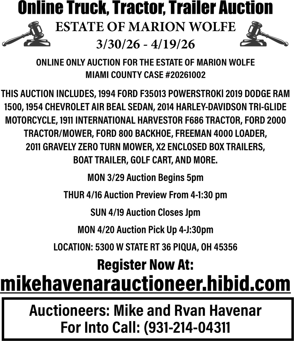 Apr 11, 2026. Mike Havenar - Ryan Havenar Auctions Ads from Sidney Daily News